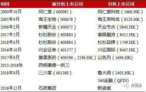 近两年来,我们也看到很多公司开始着手分拆上市,提升估值。包括杉杉股份、药明康德、石药集团,以及互联网巨头腾讯、三六零等等。
