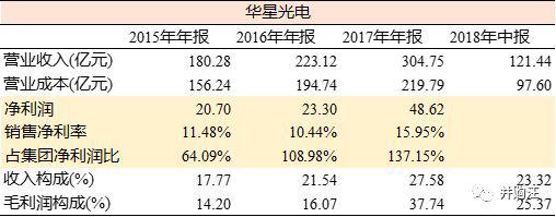 2015年、2016年、2017年,华星光电分别实现营收180.28亿、223.36亿和304.75亿,占TCL集团总营收比重分别为18%、22%、28%,占比并不算特别高。