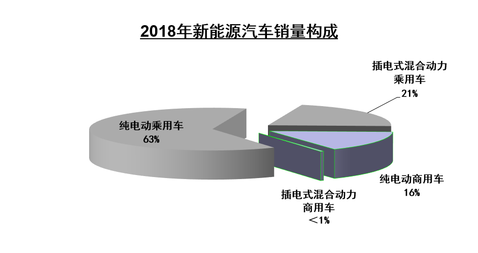根据中汽协数据,在2018年新能源汽车全年销量构成中,纯电动汽车产销分别完成98.6万辆和98.4万辆,比上年同期分别增长47.9%和50.8%;插电式混合动力汽车产销分别完成28.3万辆和27.1万辆,比上年同期分别增长122%和118%;燃料电池汽车产销均完成1527辆。 通过结构分析发现,插电式混合动力汽车销量高速增长,在整个新能源汽车中的占比也提升迅速。