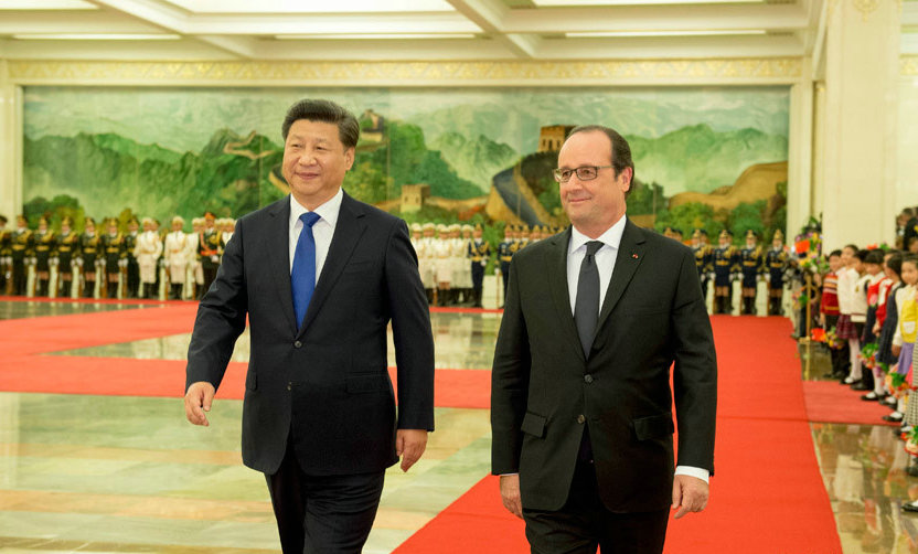 中国国家主席习近平11月2日在人民大会堂同法国总统奥朗德举行会谈。两国元首高度评价中法关系发展,同意继续合力前行,不断开创两国友好合作新局面。